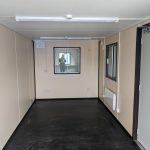 The canteen is fitted with two steel personnel doors for easy access and four single-glazed sliding windows, each protected by a lockable steel security shutter to keep the unit safe and secure when not in use.